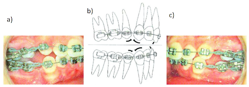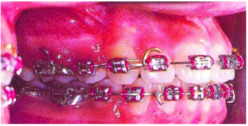 Trong trường hợp này thì yêu cầu điều trị là để các răng cửa tự do dịch chuyển về phía trước dưới tác dụng của dây cung. Vì thế không buộc và uốn dây cung phía sau để tạo điều kiện cho độ nghiêng mắc cài răng cửa phát huy tác dụng.
