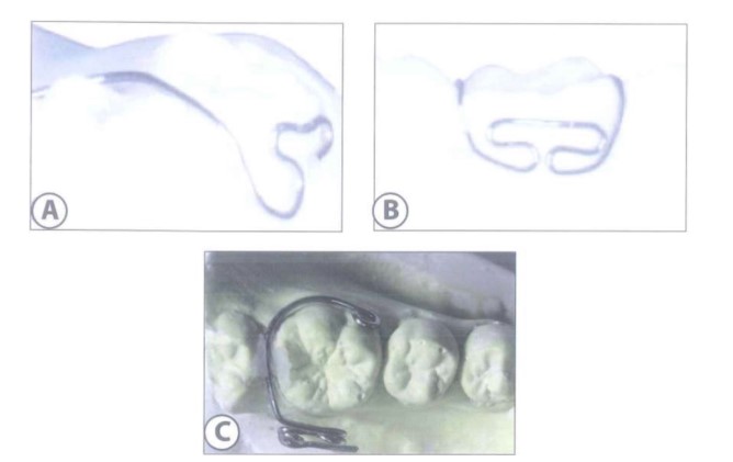 (A) Lò xo tạo lực ép di răng vào trong (B) lò xo hình T, (C) lò xo phía lưỡi hoặc phía má.