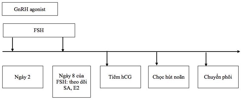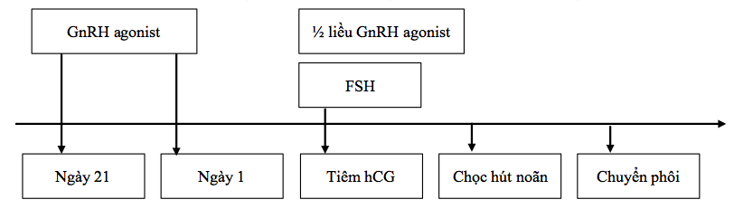 - Tiêm gonadotropin tiêm dưới da vào ngày 2 chu kỳ kinh, đồng thời với GnRH đồng vận.