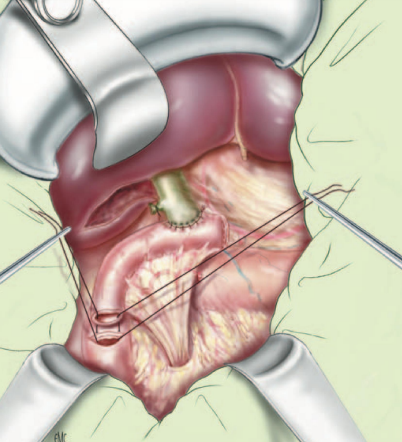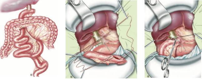 Hình. Nối ống gan chung-hỗng tràng trên quai Y. Đầu tận quai hỗng tràng đưa dưới da để dàng can thiệp sỏi trong gan tái phát di chuyển.