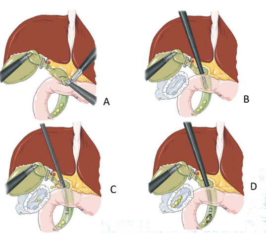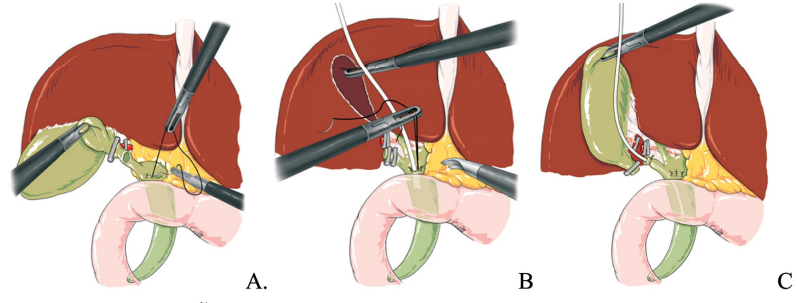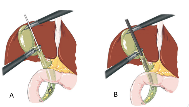 Hình. Lấy sỏi qua ngả ống túi mật.