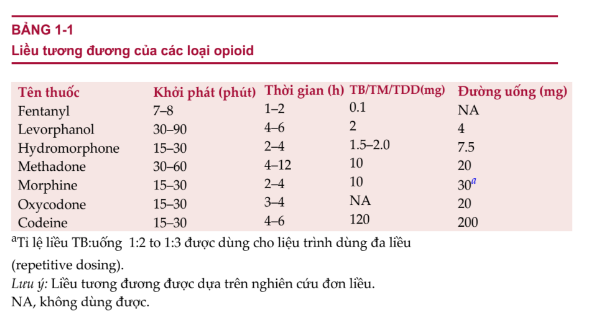 - Liều giảm đau tương đương của các loại thuốc ở bảng 1-1