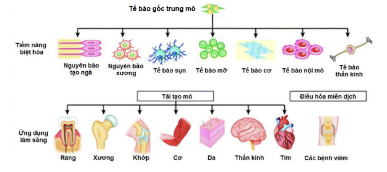Hình 2. Tiềm năng ứng dụng của tế bào gốc trung mô