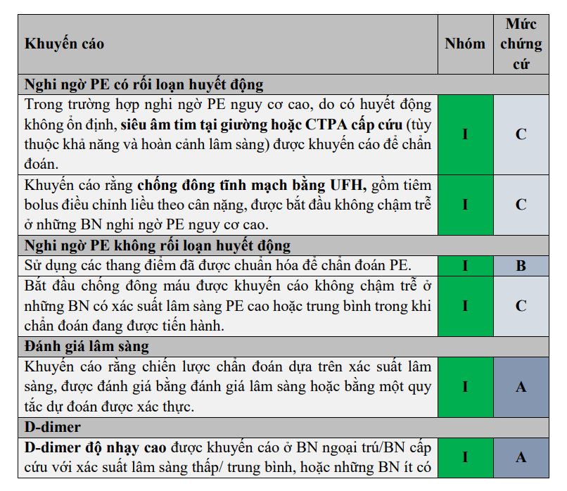 ESC 2019 Khuyến cáo về chẩn đoán thuyên tắc phổi – Phần 2