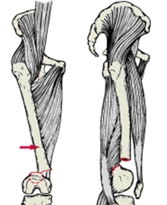 + Cơ chế chấn thương gián tiếp: thường do lực xoắn vặn, uốn bẻ hay nén ép như vấp té và xoay ngoài cẳng chân gây gãy xương đùi ở người già, do TNLĐ, thể dục thể thao hay ngã từ trên cao xuống… xương thường gãy chéo hay chéo xoắn.