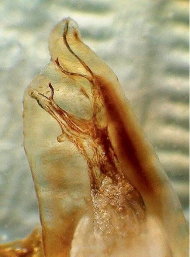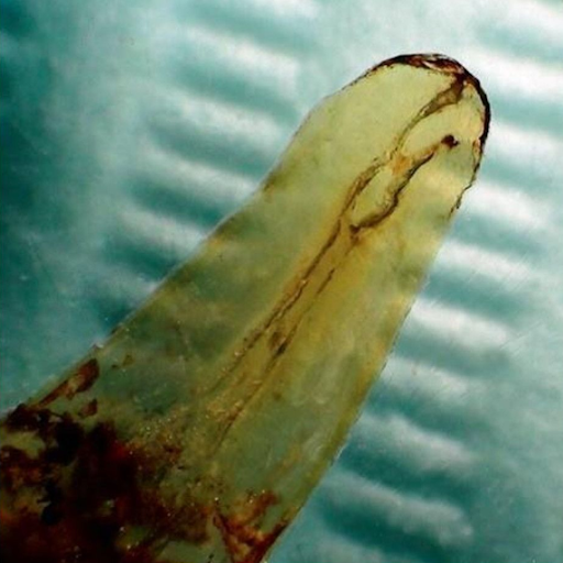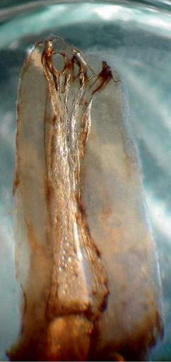 Hình chụp răng cối nhỏ thứ hai hàm trên sau khi làm trong suốt. Giải phẫu vùng quanh chóp phức tạp đến không ngờ được quan sát thấy một cách rõ ràng.
