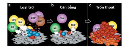 Tại giai đoạn trốn thoát, các tế bào miễn dịch dần trở nên mất hiệu lực trong việc duy trì trạng thái cân bằng, trong khi các tế bào ung thư lại tăng sinh không kiểm soát dẫn tới sự hình thành khối u và di căn.