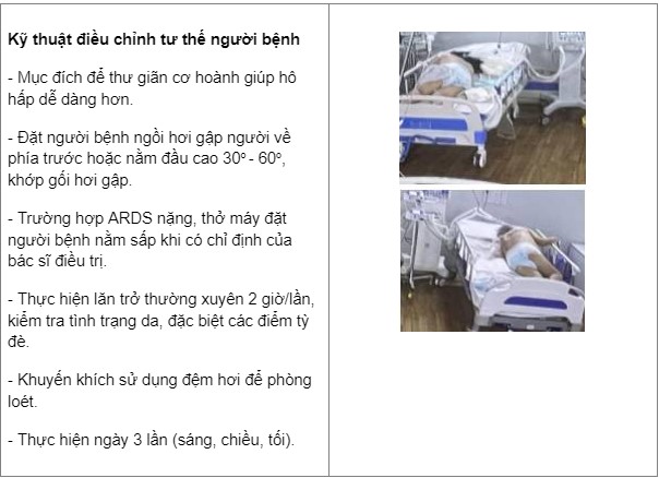 – Tư thế: có 03 tư thế nằm ngửa đầu gối gập 45 độ, tư thế ngồi hay đứng để người bệnh COVID-19 để thực hiện các bài tự tập thở.