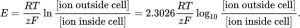 E: Điện thế màng F: Hằng số Faraday = 9.648 533 99(24)×104 C mol−1 R: Hằng số khí lý tưởng T: Nhiệt độ Kelvin Z: Số mol ion được chuyển qua màng