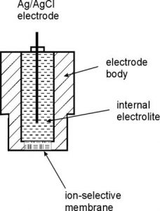 Hình 1: Minh họa mô hình điện cực chọn lọc ion (ISE)