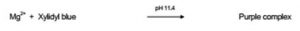- Hóa chất xét nghiệm magnesium sử dụng phương pháp trực tiếp, trong đó ion magnesium tạo phức màu với xanh xylidyl. Màu được tạo thành sẽ được đo màu ở bước sóng 520/800 nm và nó sẽ tỉ lệ với nồng độ của magnesium trong mẫu. Việc gây nhiễu của calcium sẽ được loại bỏ bởi hoạt chất glycoletherdiamine-N,N,N-tetraacetic acid (GEDTA).