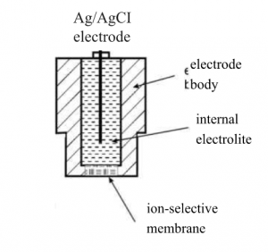 Hình 1: minh họa mô hình điện cực chọn lọc ion (ISE)