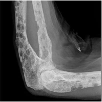 - Gãy xương: Các vị trí thường gặp là gãy đầu dưới xương quay, gãy cổ xương đùi, gãy các đốt sống (lưng và thắt lưng); xuất hiện sau chấn thương rất nhẹ, thậm chí không rõ chấn thương.