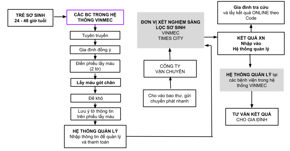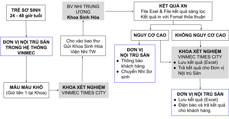 V. Quy trình phối hợp giữa các bệnh viện vinmec và đơn vị xét nghiệm sàng lọc sơ sinh vinmec times city
