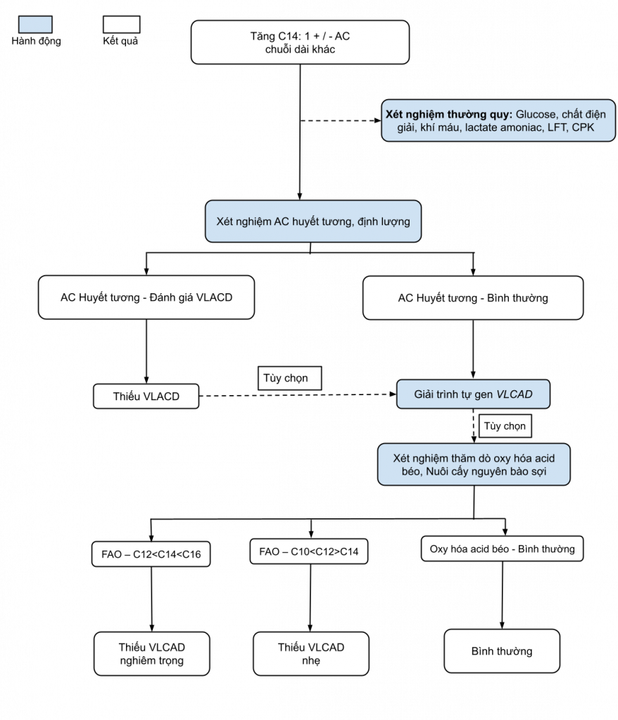 Thiếu acyl-CoA dehydrogenase chuỗi rất dài (VLCAD: Very long-chain acyl-CoA dehydrogenase). ACMG Code: VLACD; OMIM: 201475