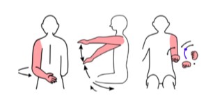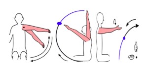 Gập khuỷu tay 90 độ sau đó giữ nguyên vị trí này, xoay cẳng tay vào trong và ra ngoài | |