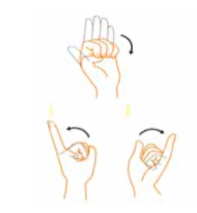 Giai đoạn VI | Có thể thực hiện tất cả các thao tác cầm nắm, cải thiện sự khéo léo, có thể duỗi được hoàn toàn. Có thể cử động từng ngón nhưng so với bên tay khỏe thì kém hơn nhiều |