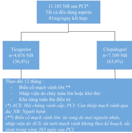 | Đầu tháng 1 năm 2020, tạp chí JAMA đăng tải một nghiên cứu thuần tập được thực hiện bởi Turgeon và cộng sự nhằm bổ sung thêm bằng chứng về tính hiệu quả và an toàn của hai thuốc này trên thực hành lâm sàng.4 Nghiên cứu thực hiện trên những người bệnh nhồi máu cơ tim xuất viện sau khi can thiệp động mạch vành qua da và được kê ticagrelor hoặc clopidogrel ở Canada từ năm 2012 đến năm 2016. | ![]() |