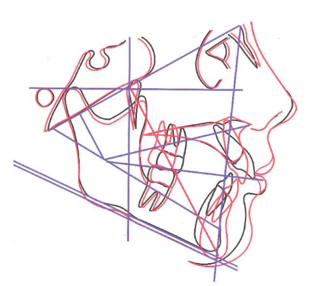 Lập kế hoạch VTO (Visualised Treatment Objective) (vẽ nét phim màu đỏ) và chồng trên phim vẽ nét ban đầu (vẽ nét phim màu đen) để đánh giá sự khác biệt trước và sau điều trị, trên cơ sở đó lập kế hoạch điều trị chi tiết.