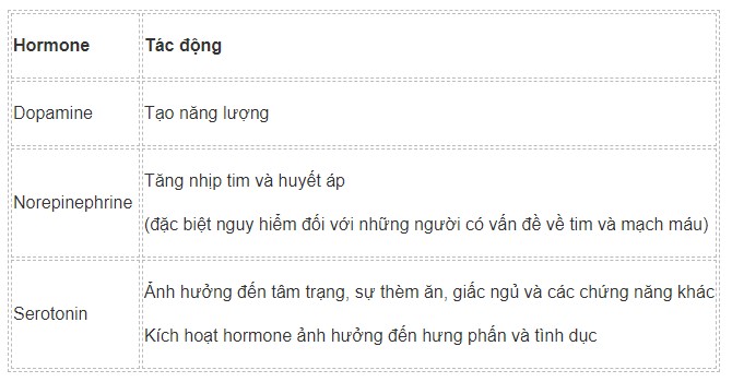 Cơ chế hoạt động: MDMA làm tăng hoạt động của các chất sau trong não