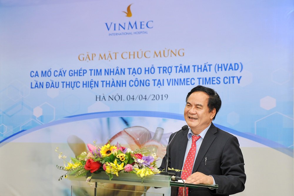 “Tại Việt Nam, công nghệ cấy ghép dụng cụ hỗ trợ tâm thất HVAD chưa được chuyển giao cho nhiều bệnh viện. Với việc trở thành bệnh viện tư nhân đầu tiên, đồng thời là bệnh viện thứ 2 tại Việt Nam thực hiện thành công kỹ thuật cấy phép tim nhân tạo hổ trợ tâm thất, Vinmec có thể tiếp cận với với nhưng công nghệ mới nhất trong lĩnh vực tim nhân tạo, đáp ứng nhu cầu của người bệnh suy tim trong và ngoài nước có nhu cầu điều trị bằng phương pháp này” – GS.TS Bùi Đức Phú – chuyên gia phẫu thuật tim, đồng thời là “tổng chỉ huy” của ca cấy ghép HVAD đầu tiên tại Vinmec chia sẻ.