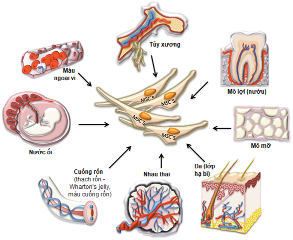 Tế bào gốc trung mô có thể thu nhận từ nhiều nguồn khác nhau như mô mỡ, tủy xương,